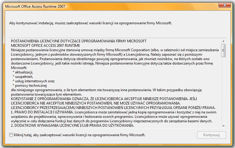Nowa wersja Access Runtime SP2 zawiera wszystkie te elementy w języku polskim.