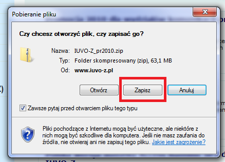3. Skompresowany plik (ZIP) z programem IUVO-Z po pobraniu ze strony internetowej.