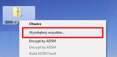 4. Rozpakowywanie (wyodrębnianie) skompresowanego pliku z programem - naciśnięcie prawym przyciskiem myszy spowoduje rozwinięcie listy na której znajduje się możliwość wyodrębnienia (rozpakowania) pliku.