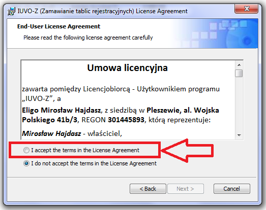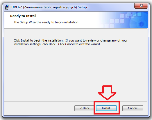 Koniec instalacji. Program do zamawiania tablic rejestracyjnych został zainstalowany!